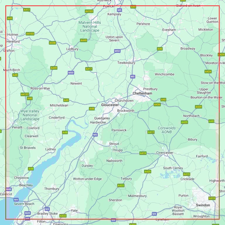 We cover all towns and areas you can see on the map, including Gloucestershire, Herefordshire & Worcestershire